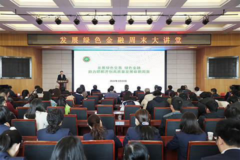为深入贯彻市委十届七次全会精神,推动落实3月9日市委常委会通过的钢铁产业、煤炭洗选、焦化行业、建材行业等绿色低碳转型高质量发展三年行动方案,为我市高质量发展提供智力支持,3月22日下午,由市发改委、市人行、邯郸银行联合举办的发展绿色金融“周末大讲堂”在邯银大厦西四楼会议厅开讲。 本期“周末大讲堂”特邀北京绿色交易所董事长王乃祥、绿色金融中心高级经理金子盛进行专题授课。王乃祥以《发展绿色交易、绿色金融 助力邯郸开创高质量发展崭新局面》为主题,围绕绿色市场体系发展恰逢其时、绿色交易绿色金融服务低碳转型、国家级绿色交易所服务绿色发展三个方面,进行了全面、权威、深入讲解,让在场人员对发展绿色金融有了更深的理解认识。金子盛介绍了北京绿交所工作情况和平台使用情况,就绿色金融政策落地落实讲了意见建议。 本次大讲堂采取现场和视频相结合的方式进行。市发改委、市人行、邯郸银行干部职工,市发改系统联系的重点企业代表600人参加了讲座。 (靳春楠)