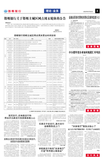 邯郸银行关于邯郸主城区网点周末轮休的公告