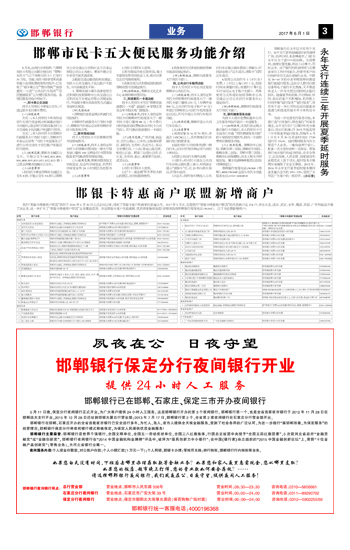 邯郸银行保定分行夜间银行开业